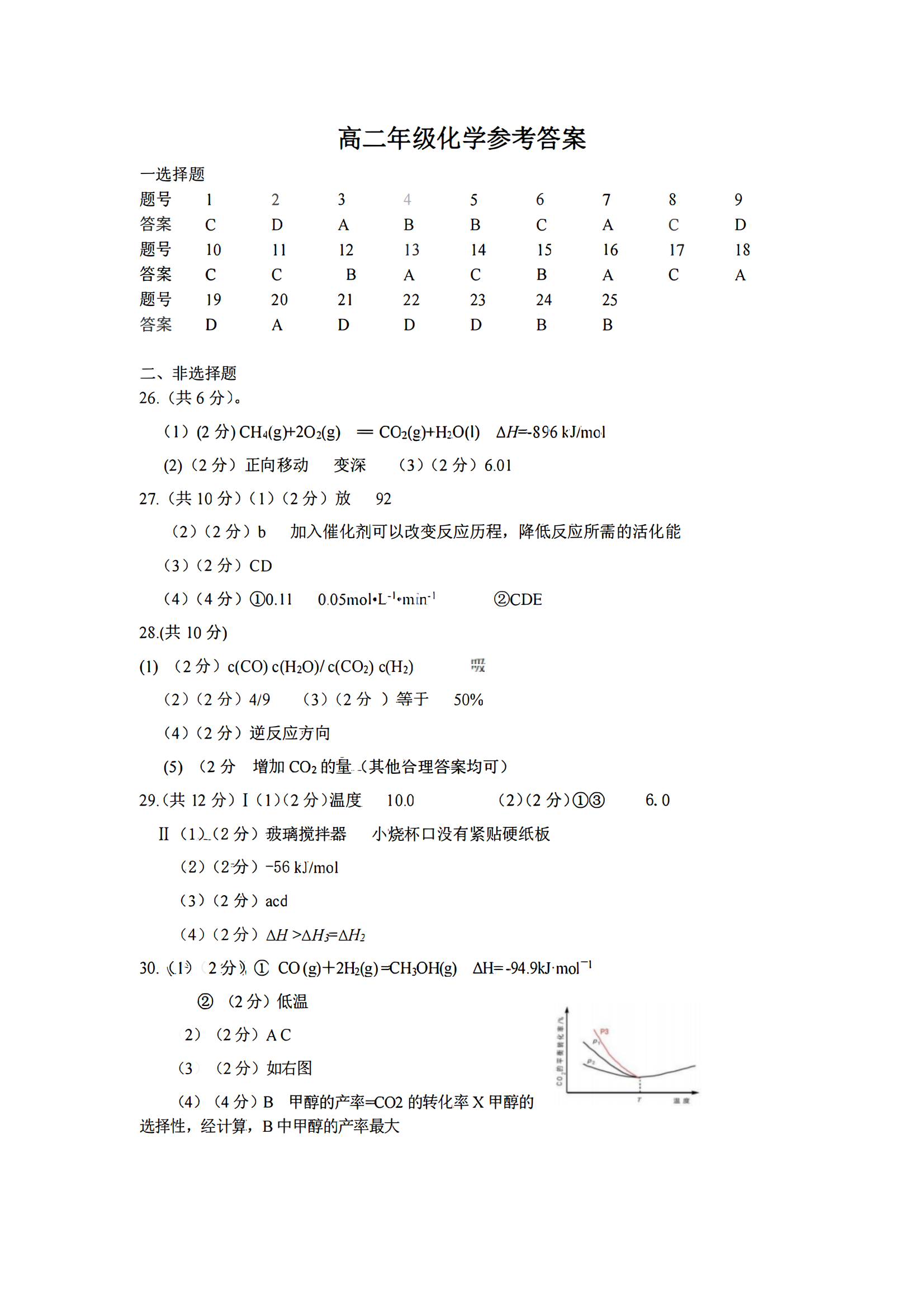 2024届浙江省精诚联盟高二10月联考化学答案