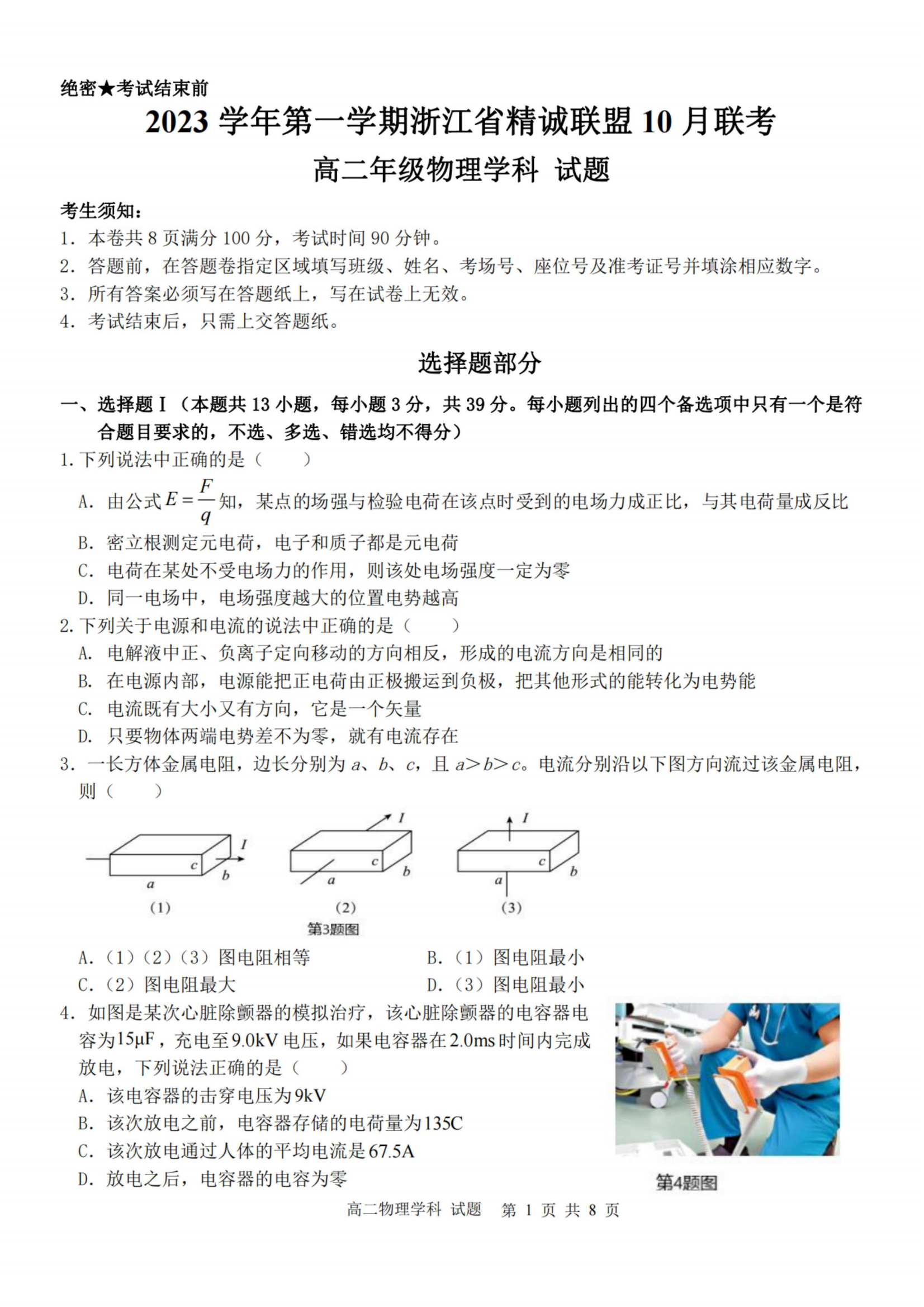 2024届浙江省精诚联盟高二10月联考于近期开考,为方便大家巩固练习,自主选拔在线浙江新高考团队同步整理了2024届浙江省精诚联盟高二10月联考物理试题及答案,供大家下载学习。2024届浙江省精诚联盟高二10月联考于近期开考,为方便大家巩固练习,自主选拔在线浙江新高考团队同步整理了2024届浙江省精诚联盟高二10月联考物理试题及答案,供大家下载学习。