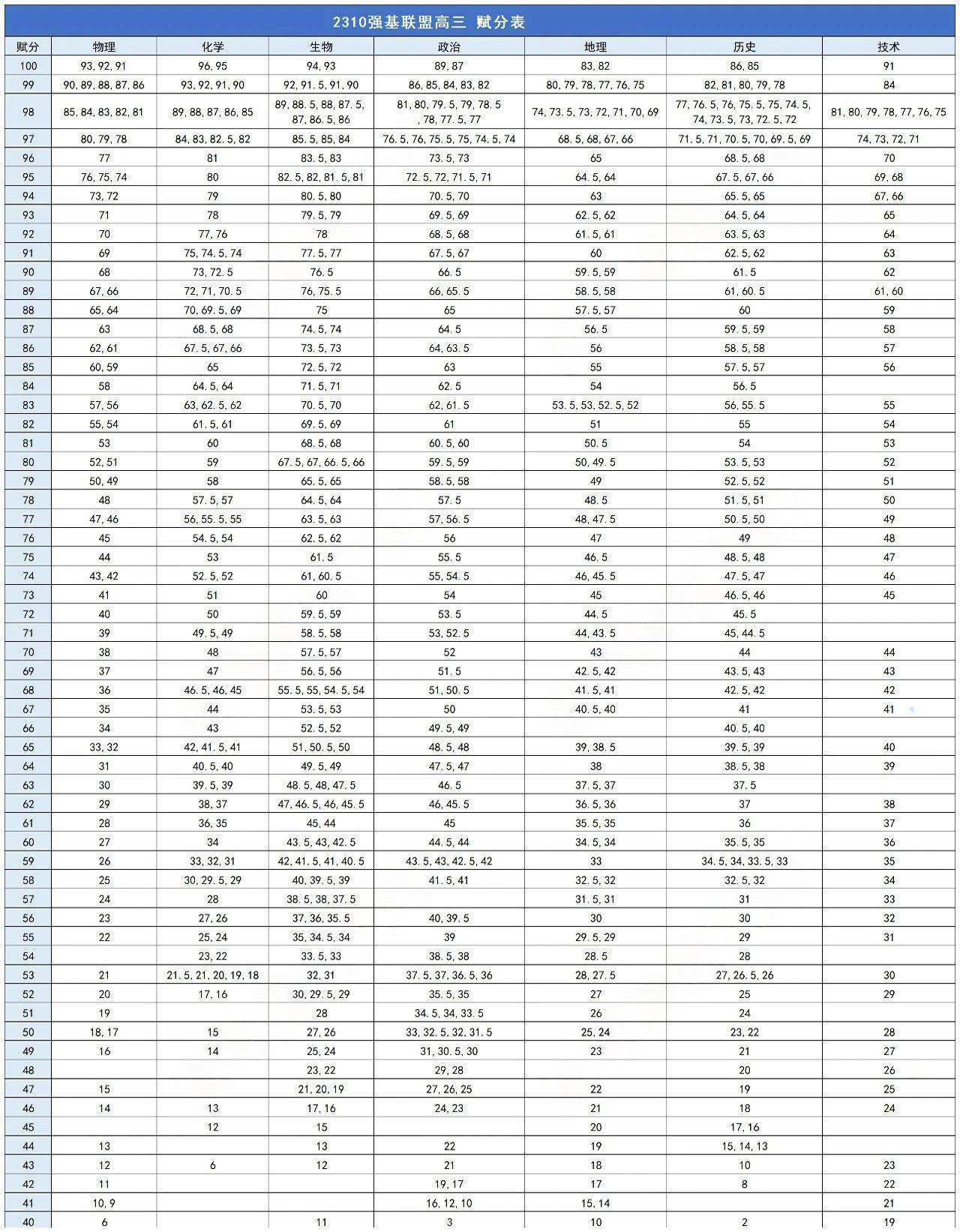 浙江省2024届强基联盟高三10月联考赋分表已公布,自主选拔在线浙江新高考团队为大家整理了浙江省2024届强基联盟高三10月联考赋分表,供大家参考!