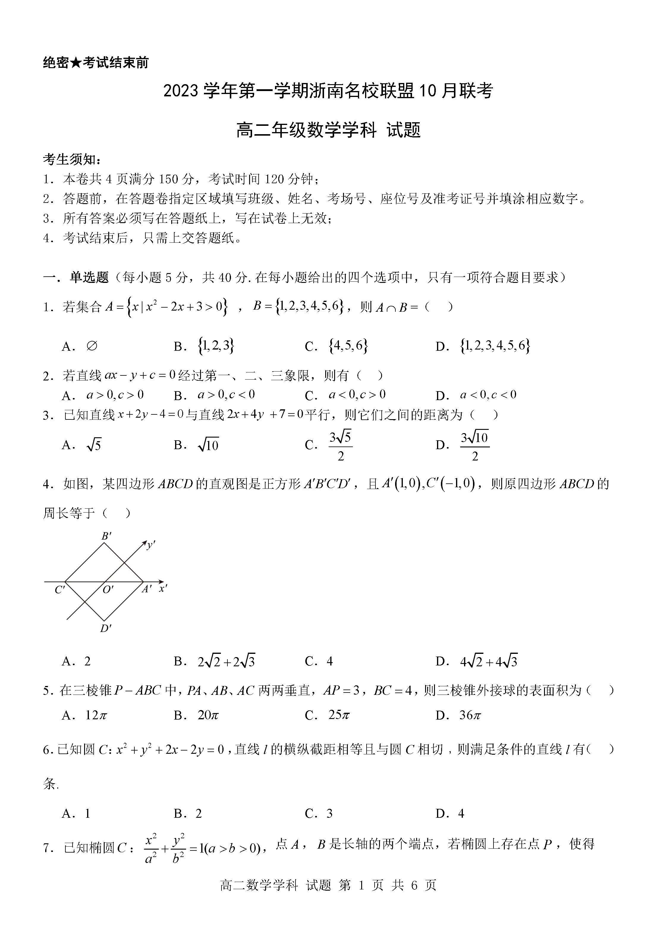 浙南名校联盟2024届高二10月联考已于近日开考,自主选拔在线团队同步更新2024浙南名校联盟高二10月联考相关试题及参考答案,供大家下载练习。