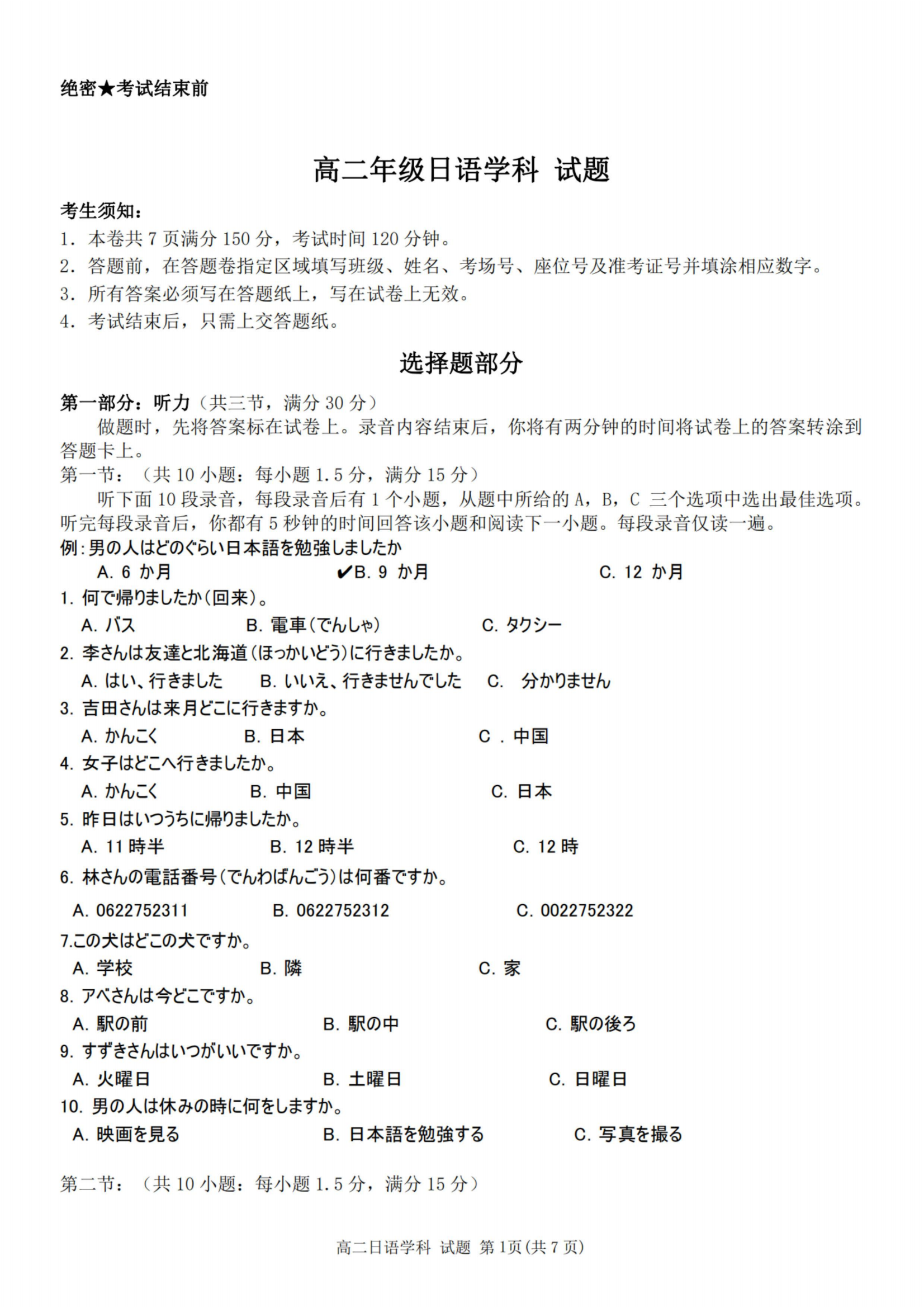 2024届浙江省精诚联盟高二10月联考于近期开考,为方便大家巩固练习,自主选拔在线浙江新高考团队同步整理了2024届浙江省精诚联盟高二10月联考日语试题及答案,供大家下载学习。2024届浙江省精诚联盟高二10月联考于近期开考,为方便大家巩固练习,自主选拔在线浙江新高考团队同步整理了2024届浙江省精诚联盟高二10月联考日语试题及答案,供大家下载学习。