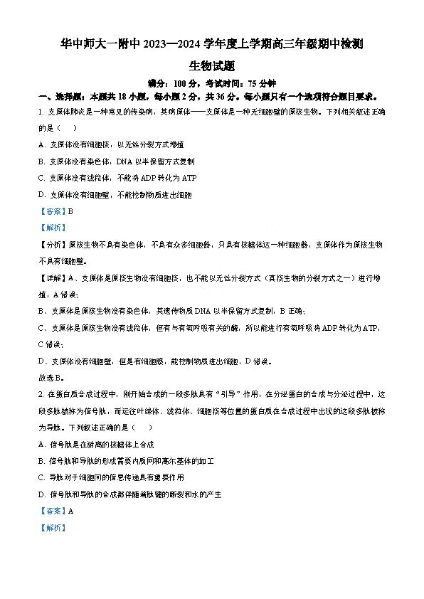 湖北省华中师大附中2024届高三11月期中已开考,自主选拔在线团队同步更新相关试题及参考答案,供大家下载练习。