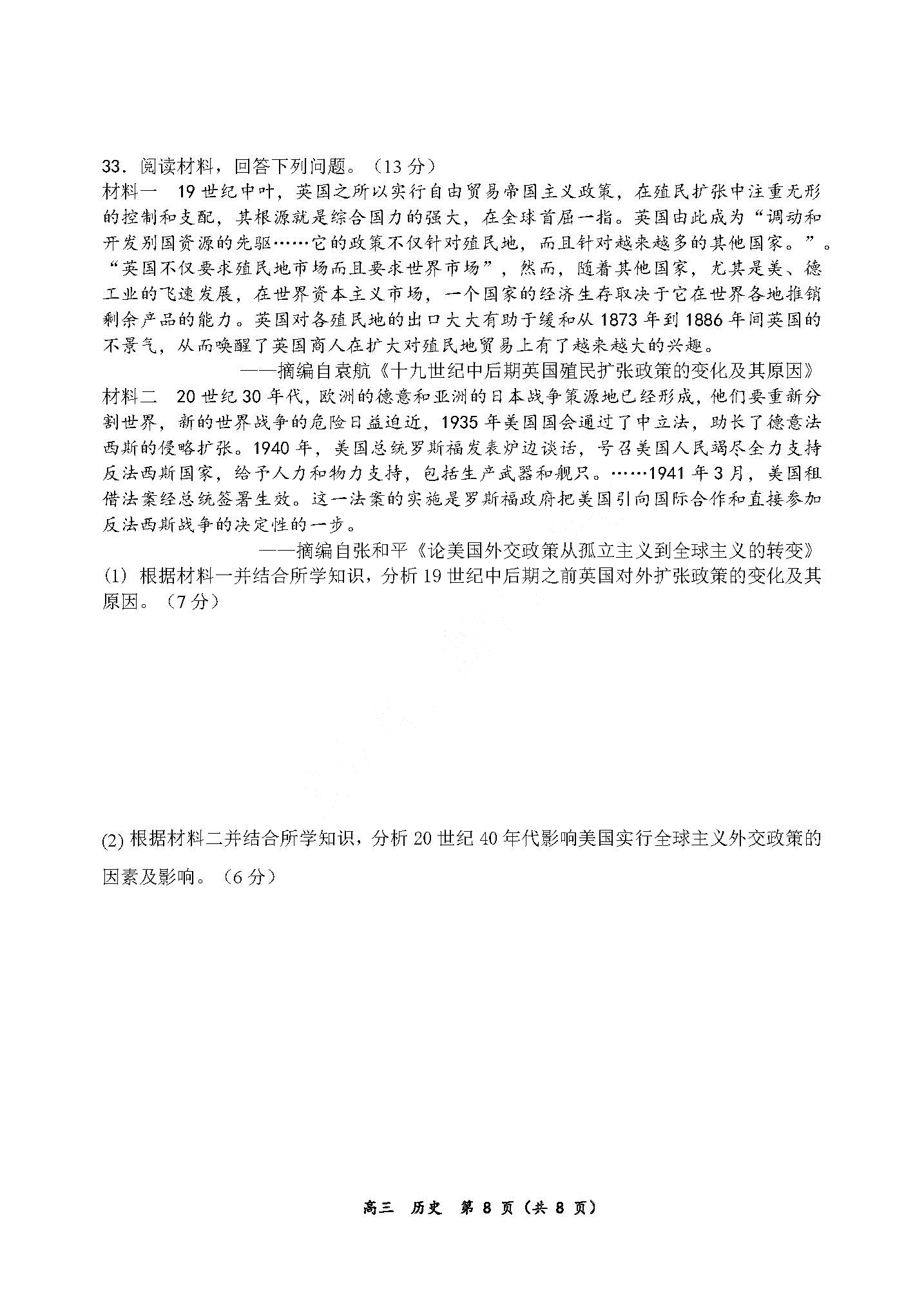 T8联考试题及答案