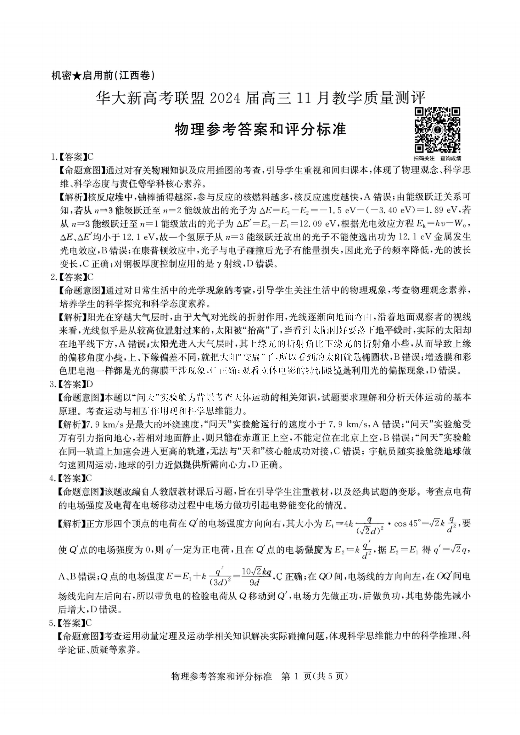 华大新高考联盟2024届高三11月联考试题及答案汇总2023-12-01