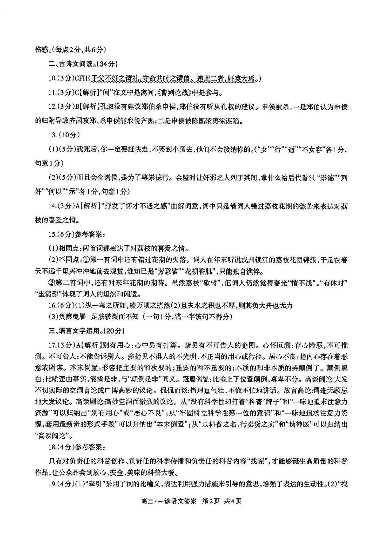 四川省泸州市高2024届高三第一次教学质量诊断性考试语文答案