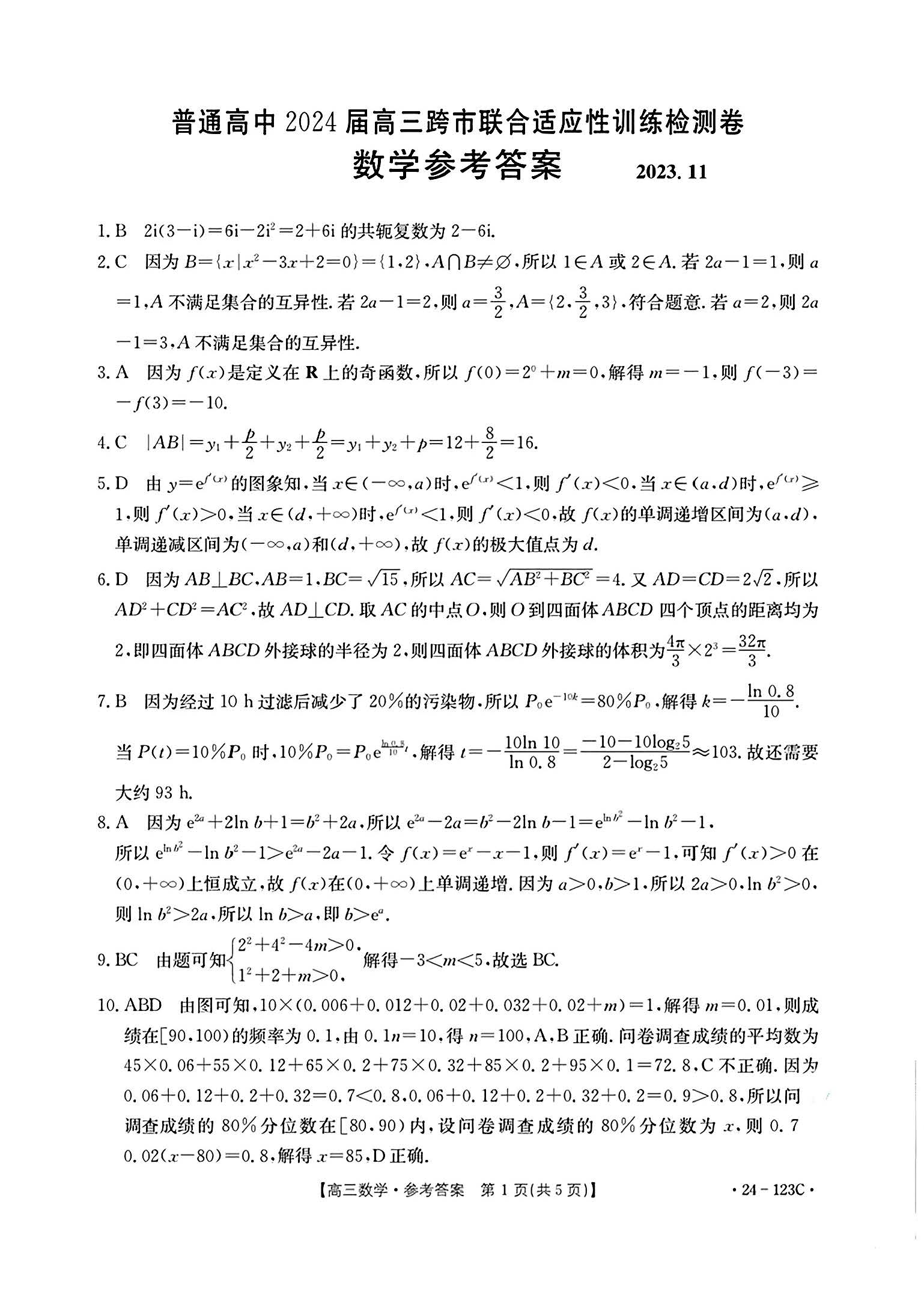广西金太阳2024届高三11月大联考金太阳(123C)数学答案