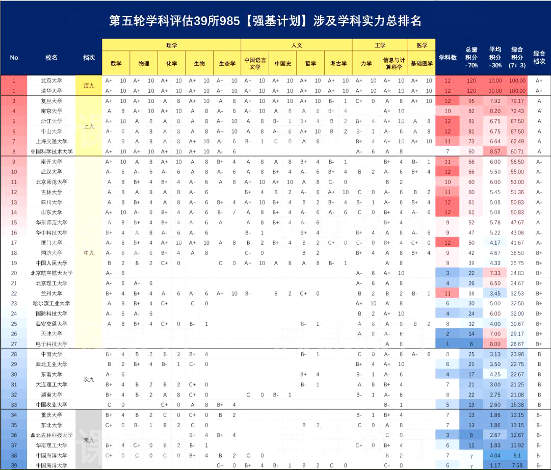 第5轮学科评估39所985高校强基计划学科排名已公布,自主选拔在线整理39所985高校强基计划学科排名情况,供考生参考。