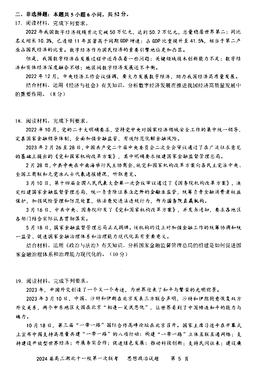 湖北省十一校2024届高三第一次联考政治试题和答案