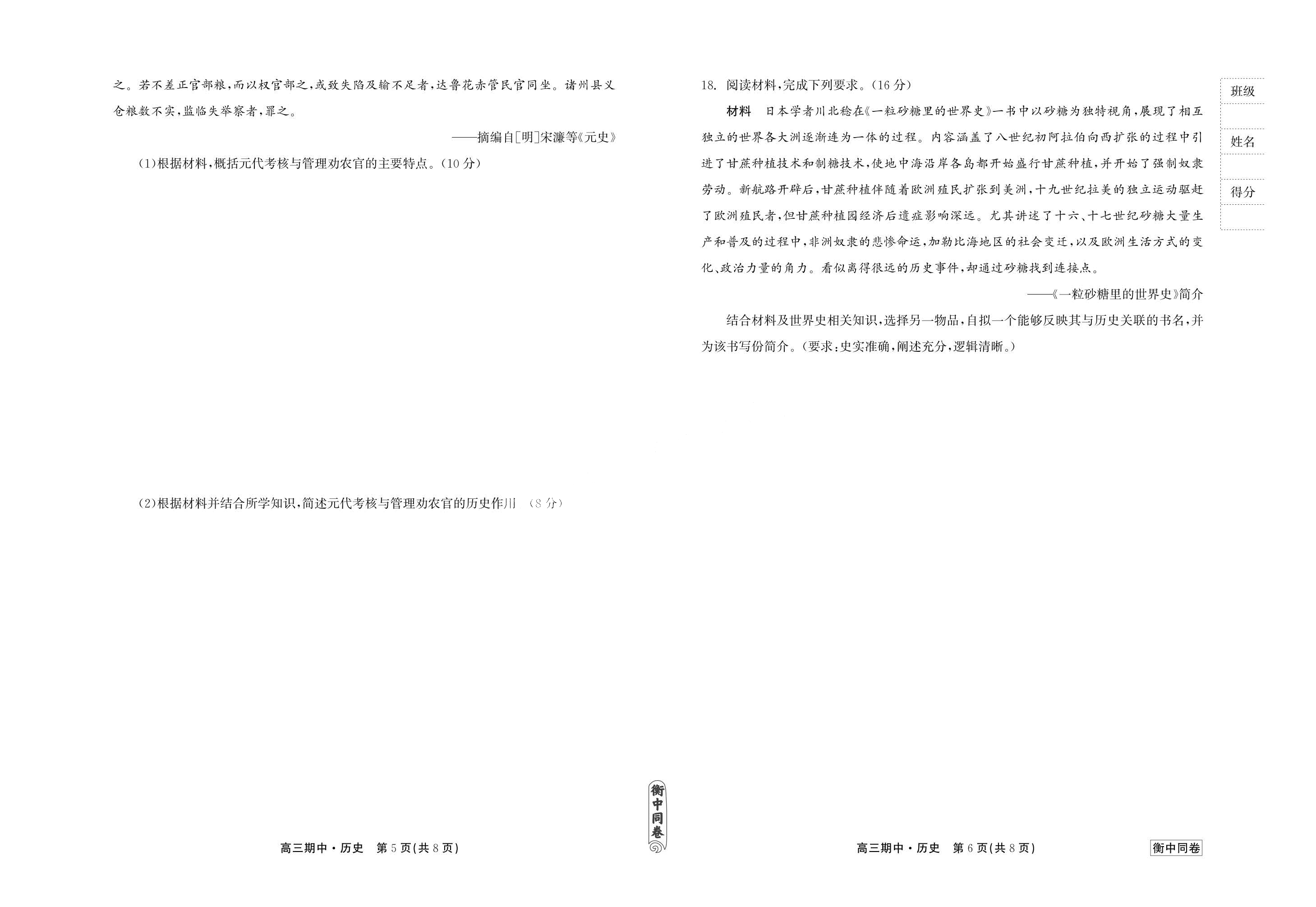 衡水同卷2024届高三上学期期中考试历史试题