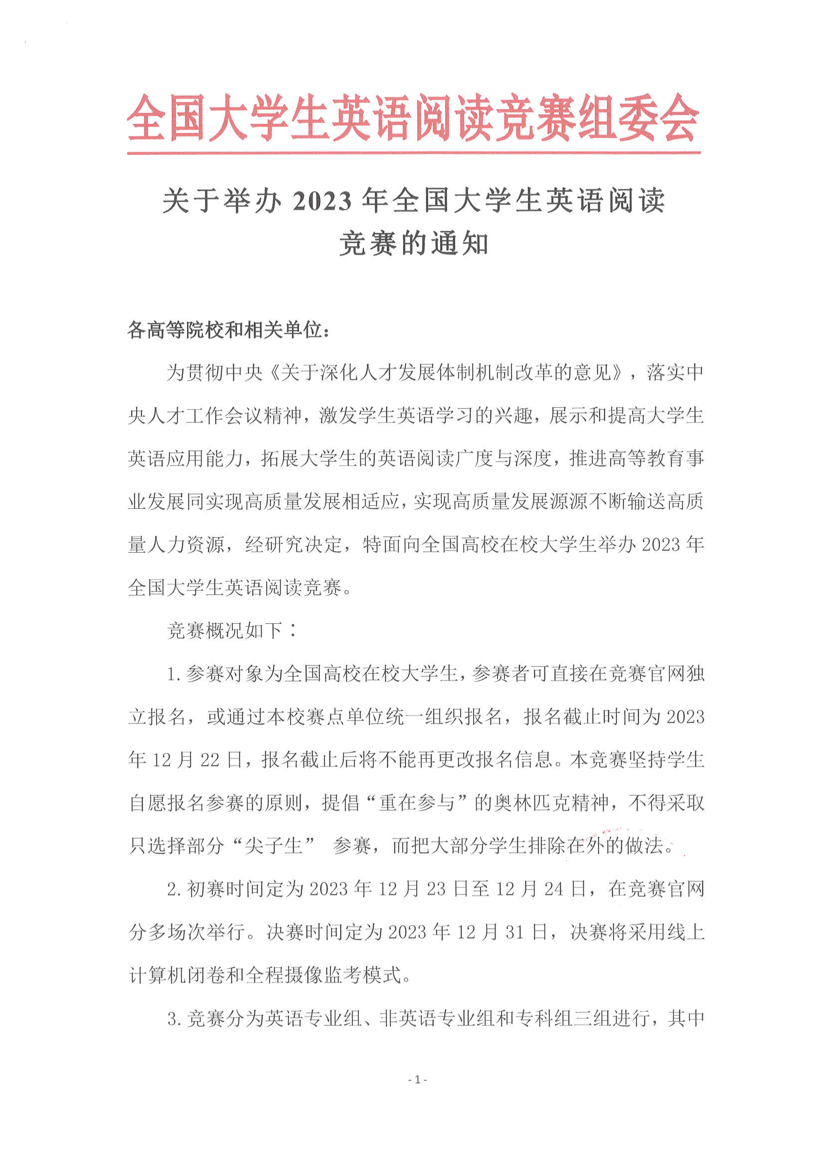 全国大学生英语阅读竞赛组委会