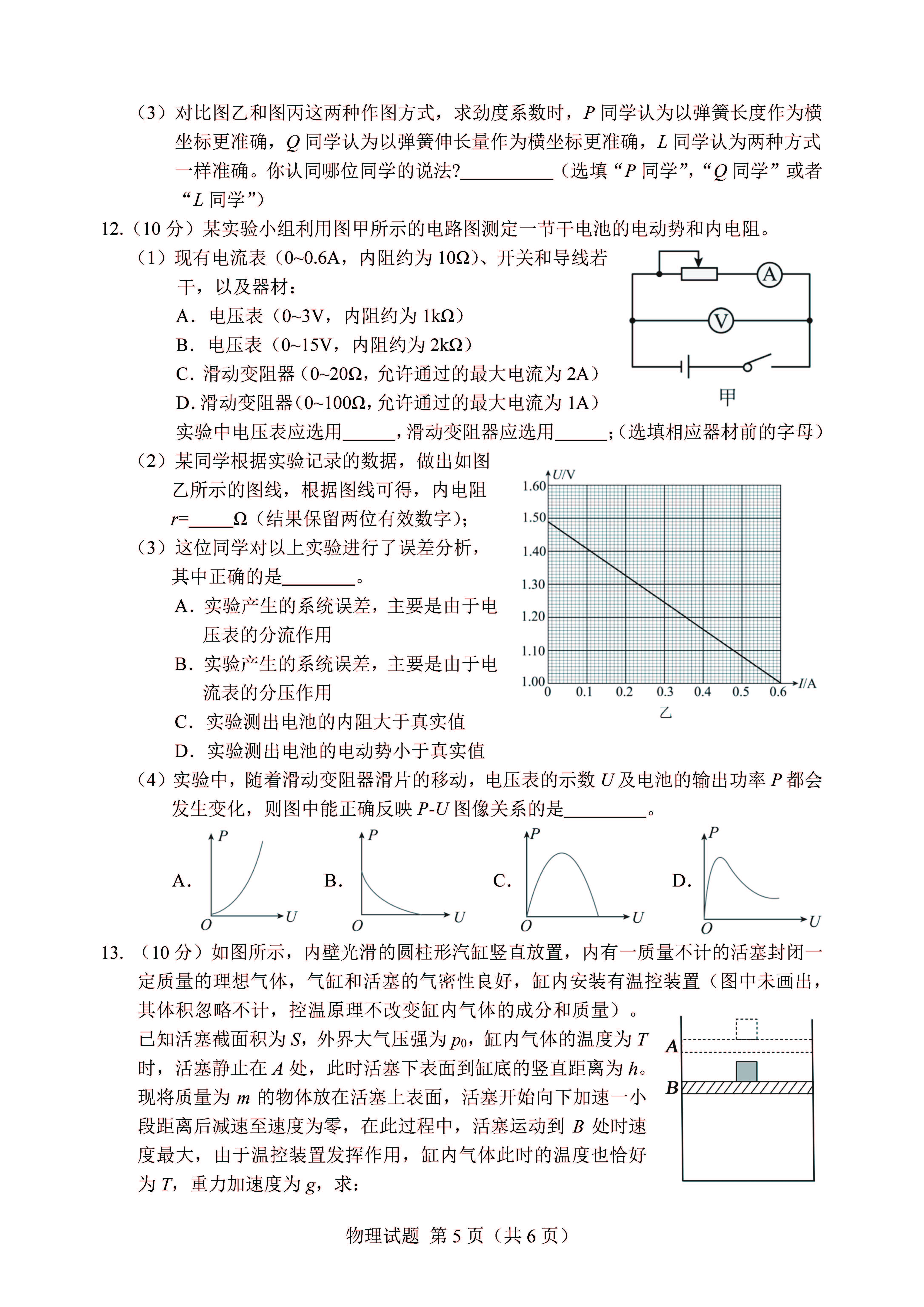 邕衡金卷广西2024届高三第一次适应性考试(12月)物理试题