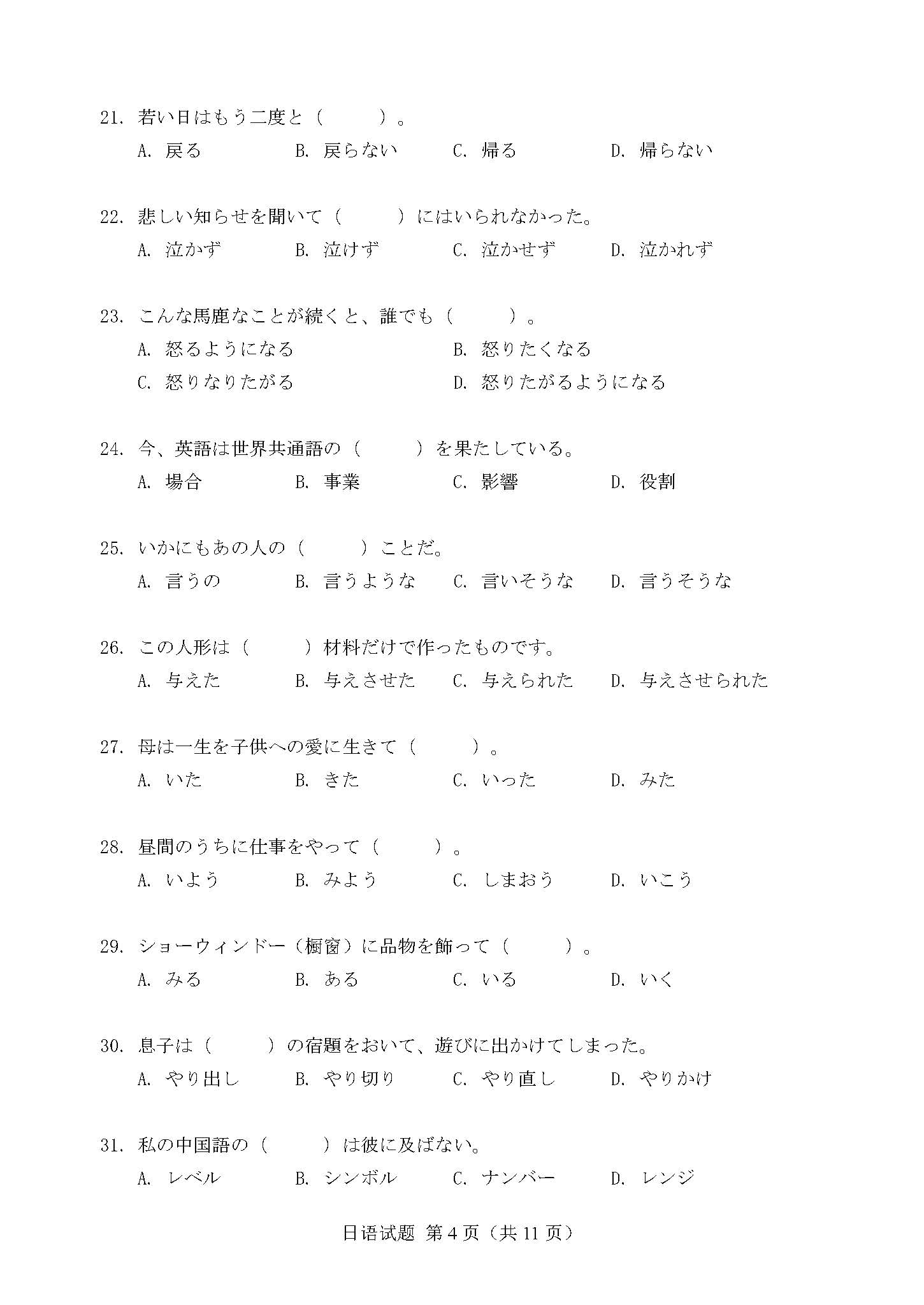 邕衡金卷广西2024届高三第一次适应性考试(12月)日语试题