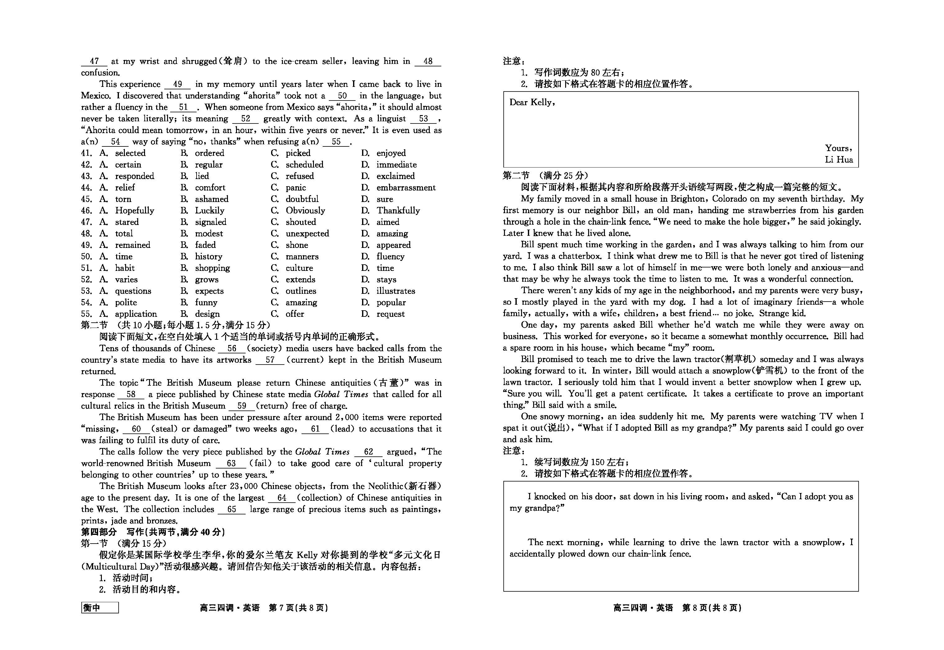 立即下载:河北省衡中同卷2024届高三上学期四调考试英语试题