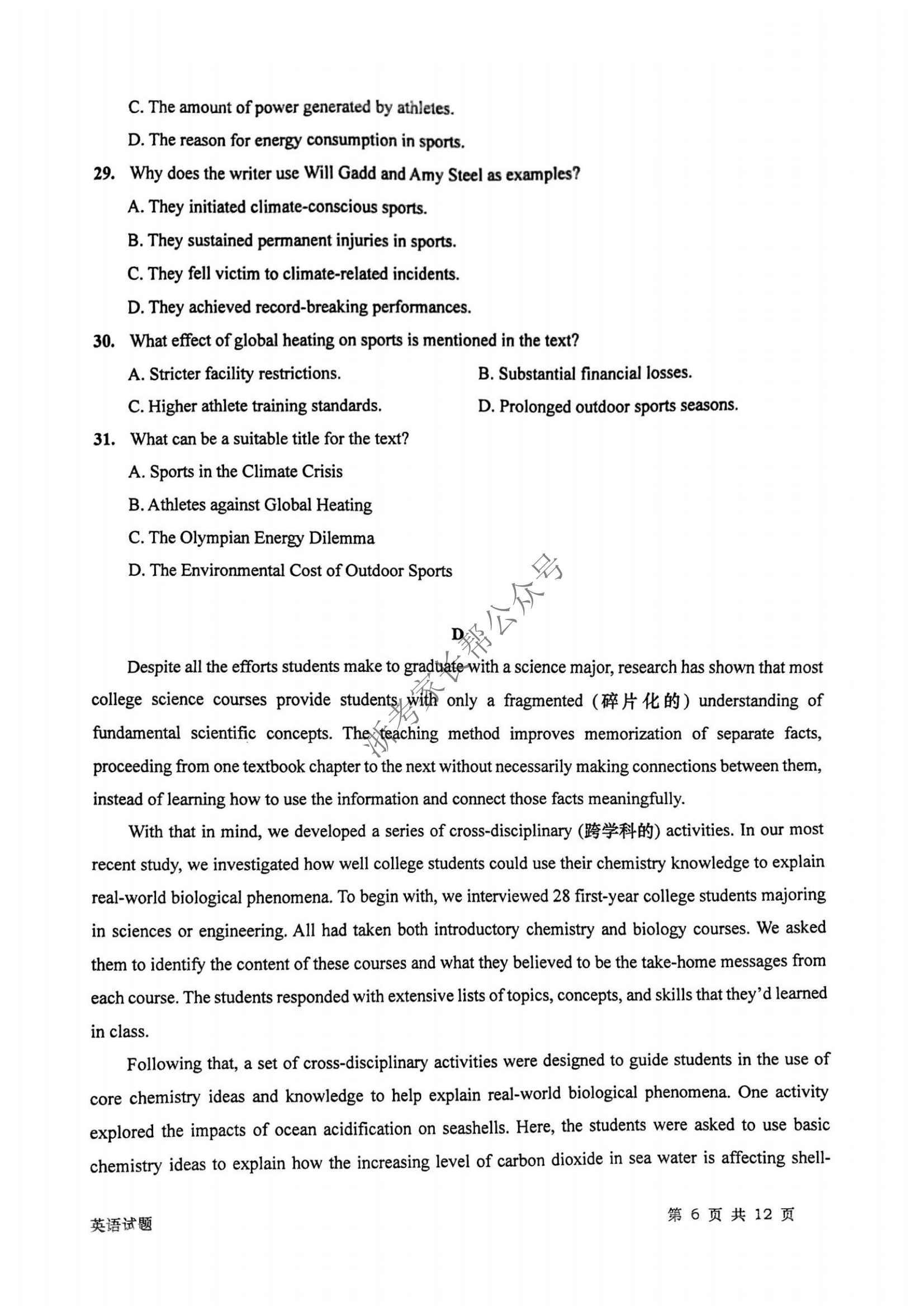 浙江镇海中学高2024届高三首考模拟考试于近期开考,为方便大家巩固练习,自主选拔在线浙江新高考团队整理了2023年12月浙江镇海中学高2024届高三首考模拟考试英语试题及答案,供大家下载学习。