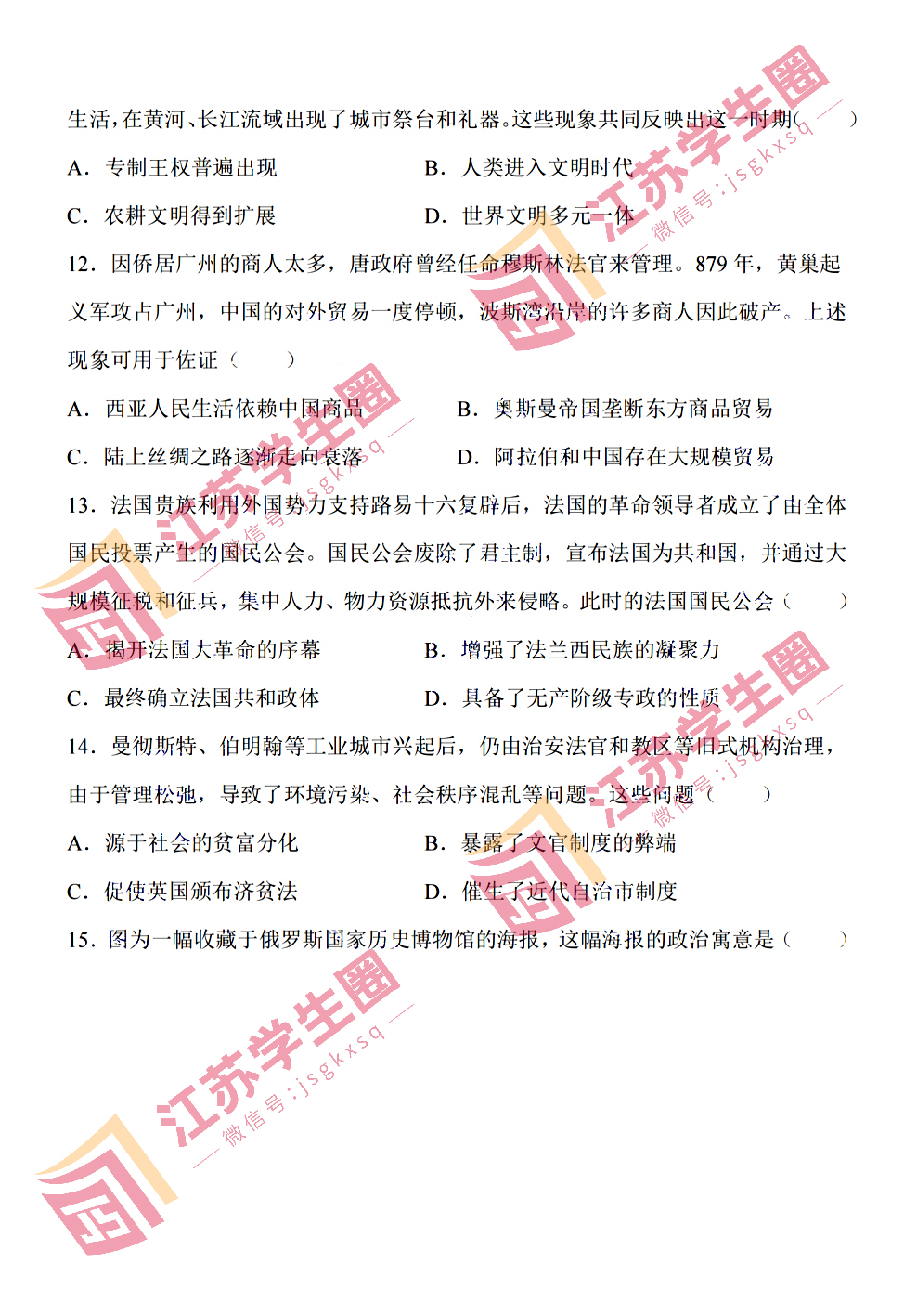 江苏省新高考基地学校2024届高三12月大联考于12月26日开考,新高考基地学校联考试题非常值得练习,江苏学生圈为大家整理江苏省2024届新高考基地学校第三次大联考历史试题和答案,一起来学习~