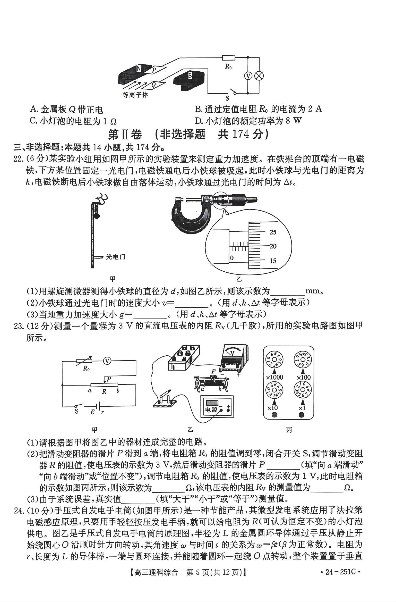 河南省金太阳2024届高三上学期12月期末(251C)理科综合试题