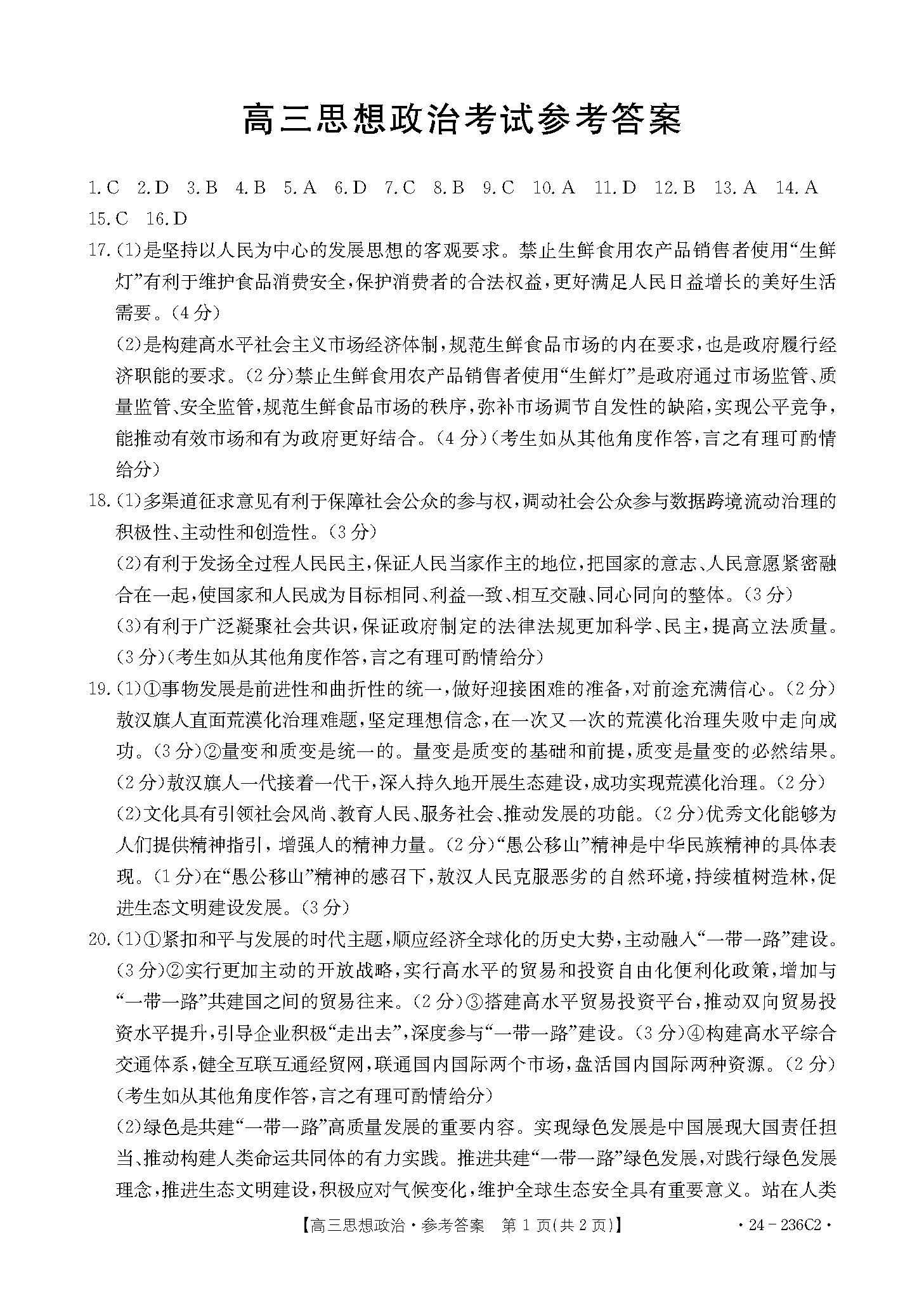 河北省金太阳2024届高三12月联考(236C)政治答案