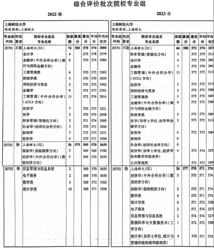 2023年上海各高校统招普通批次的录取分数线,各位家长和同学可能或多或少地看到过一些,不过综合评价录取分数线就很少有人看到了,自主选拔在线帮大家整理汇总上海财经大学2023年上海综合评价录取分数线,快收藏起来吧~