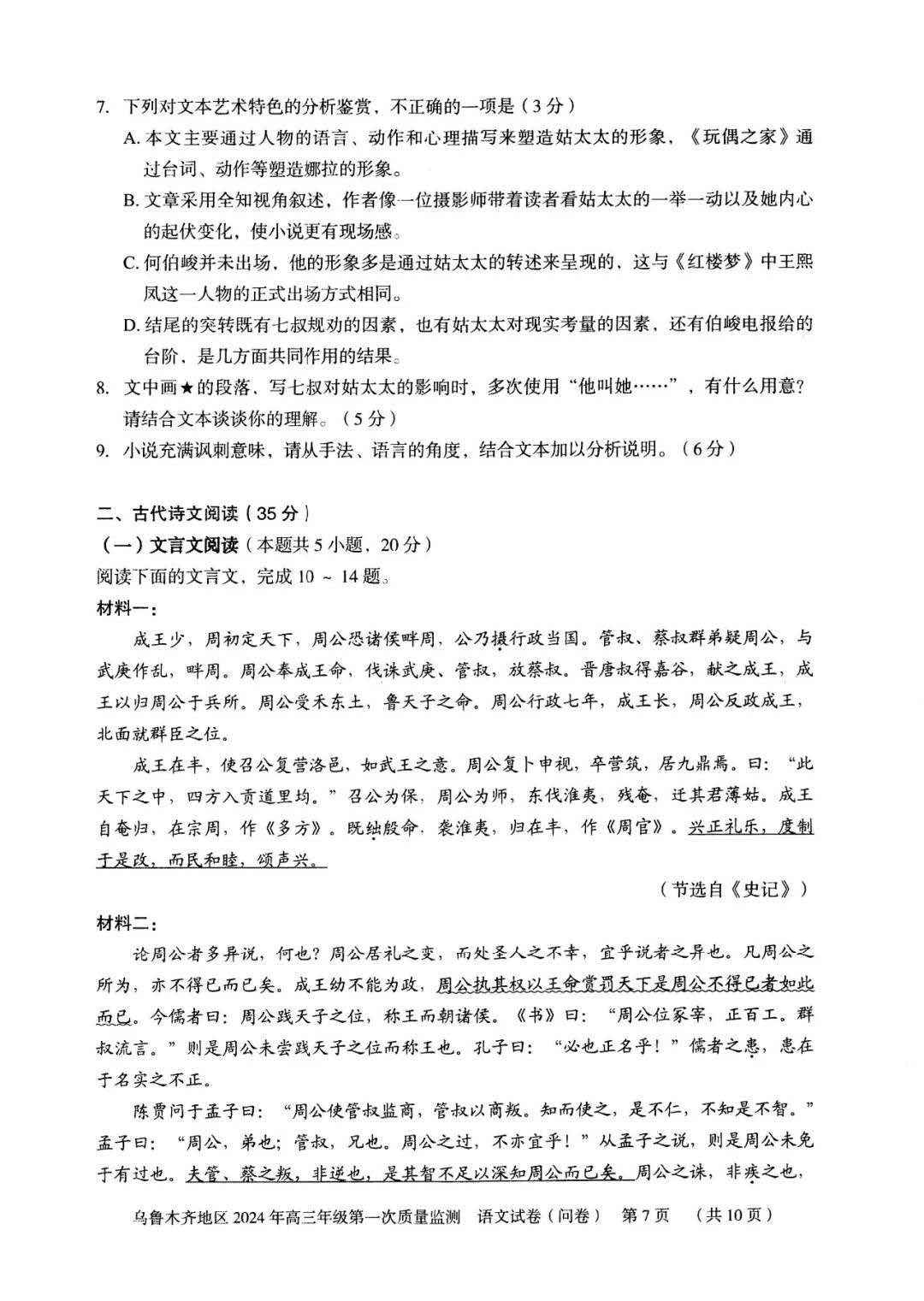 新疆乌鲁木齐市2024届高三第一次质量监测考试已经结束,自主选拔在线团队同步更新2024新疆乌鲁木齐高三一模相关试题及参考答案,供大家下载练习。