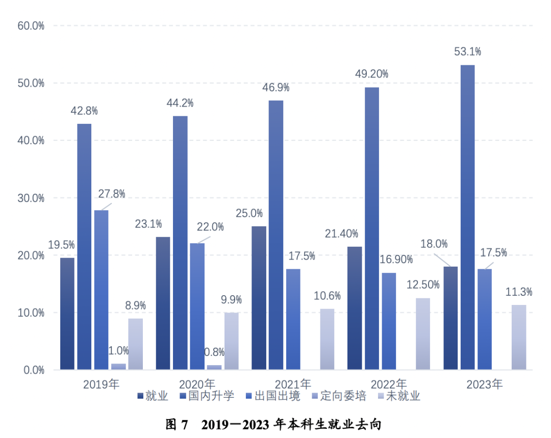 在深造和就业的选择上,选择继续深造的学生比例仍保持较高水平,占毕业生总数的70.61%。这表明了毕业生对于知识和学术的追求,也从侧面反映出当前社会对于知识和技能的渴求。