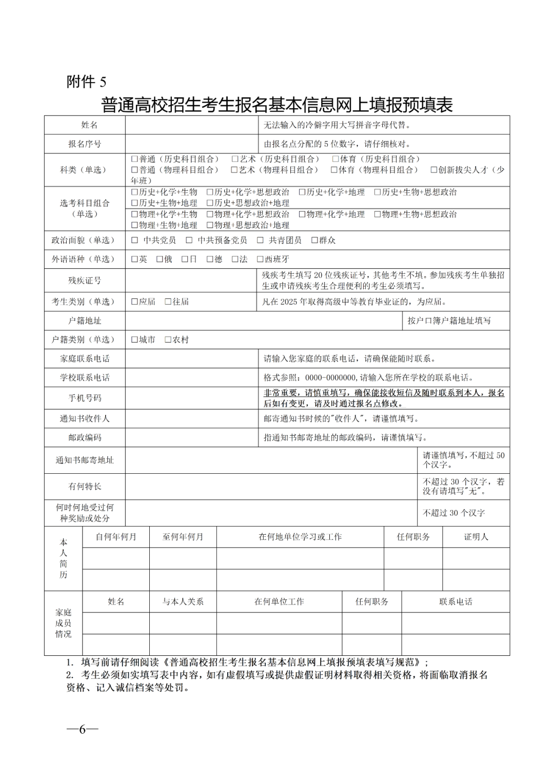 6.安徽省普通高校招生考生报名信息表(样表)