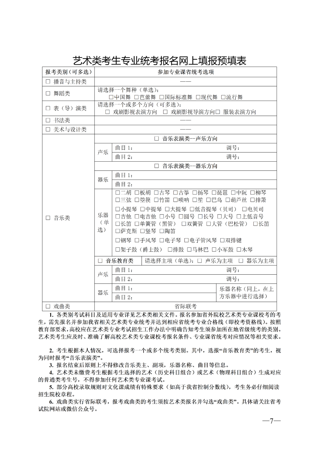 6.选报艺术类、体育类的考生均须参加高考报名,其中艺术类考生须同时进行艺术类专业课省统考报名。体育类(含健美操、啦啦操方向)考生体育专业课省统考报名时间另文通知。选报艺术类、体育类考生可兼报普通类;选报普通类的考生不能兼报艺术类、体育类。