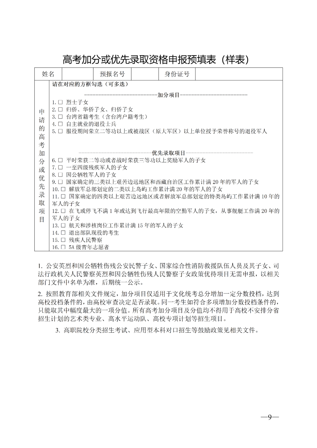 (三)高考加分、优先录取和政策优待申报