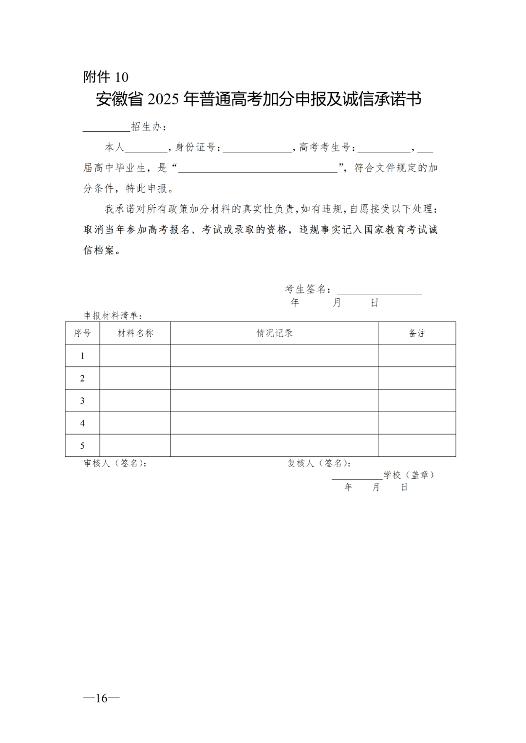 10.安徽省2025年普通高考加分申报及诚信承诺书