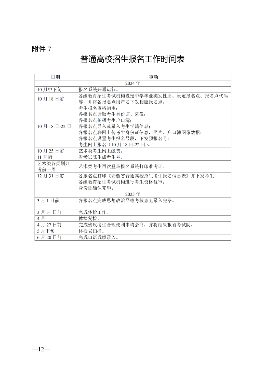 7.普通高校招生报名工作时间表