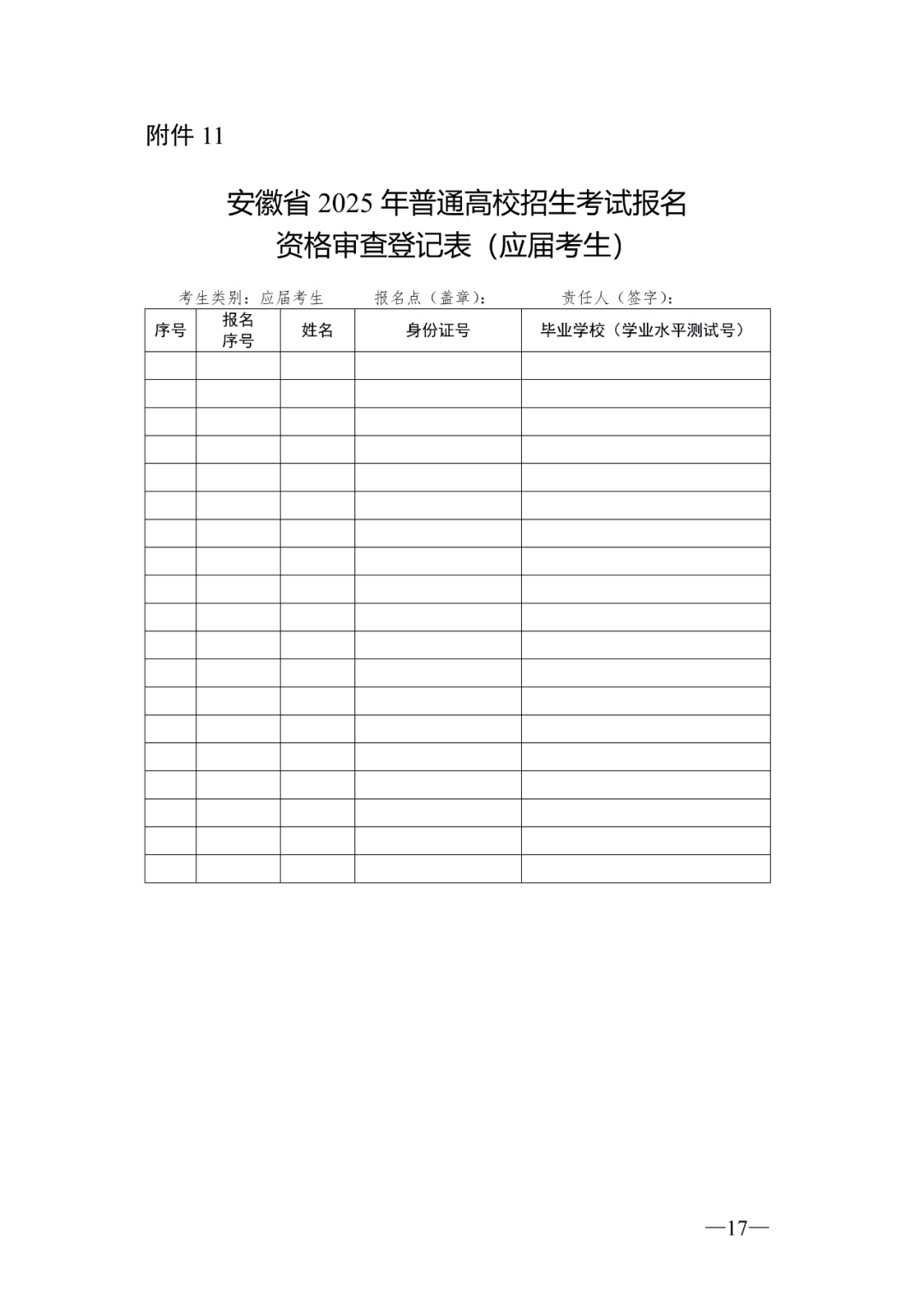 11.安徽省2025年普通高校招生考试报名资格审查登记表
