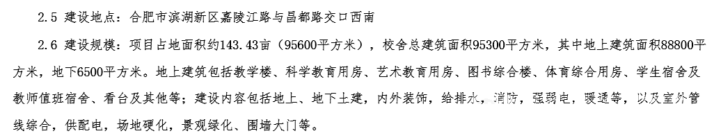 据介绍,合肥市滨湖高中(暂定名)项目位于滨湖新区嘉陵江路与昌都路交口西南,占地面积143.43亩,总建筑面积约9.53万平米。主要建设内容包括教学及辅助用房、教研用房、后勤及生活用房等,并配套建设室外运动设施、供配电、管线综合、道路广场、大门围墙、智慧校园等。