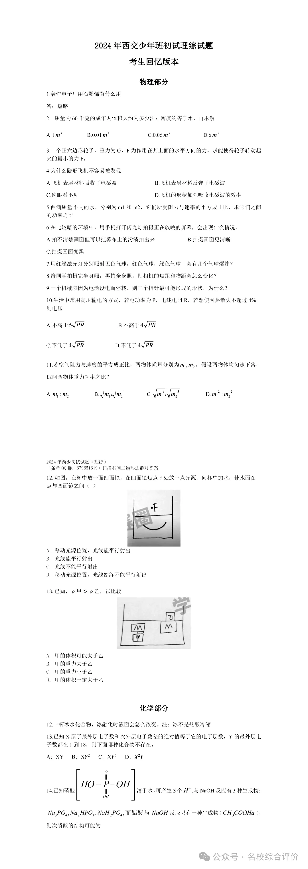 篇幅有限,更多试题请查看:2024年西安交通大学少年班初试试题及答案汇总