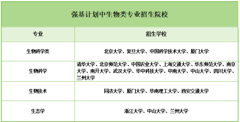 3、强基计划招收生物专业高校