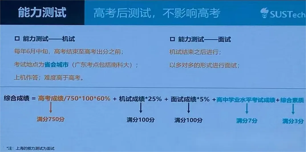 ②考生必须提前报名综合评价并参加南科大组织的能力测试。未报名综合评价或未参加能力测试的无法被录取。