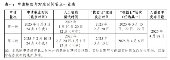 2025年设有两个申请轮次,截止日期分别是2025年1月3日和2月4日。