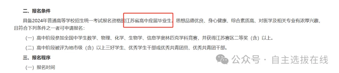 南京医科大学2024年综合评价要求应届毕业生身份。