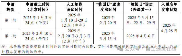 考生每轮申请成功提交完整且合格的申请材料并缴纳申请费后,还需在指定的时间内完成人工智能 (AI) 面试。面试地点不限,可以在家里、学校或者其他适宜的空间内进行。未能在规定时间内成功完成人工智能面试,则视为放弃申请资格。