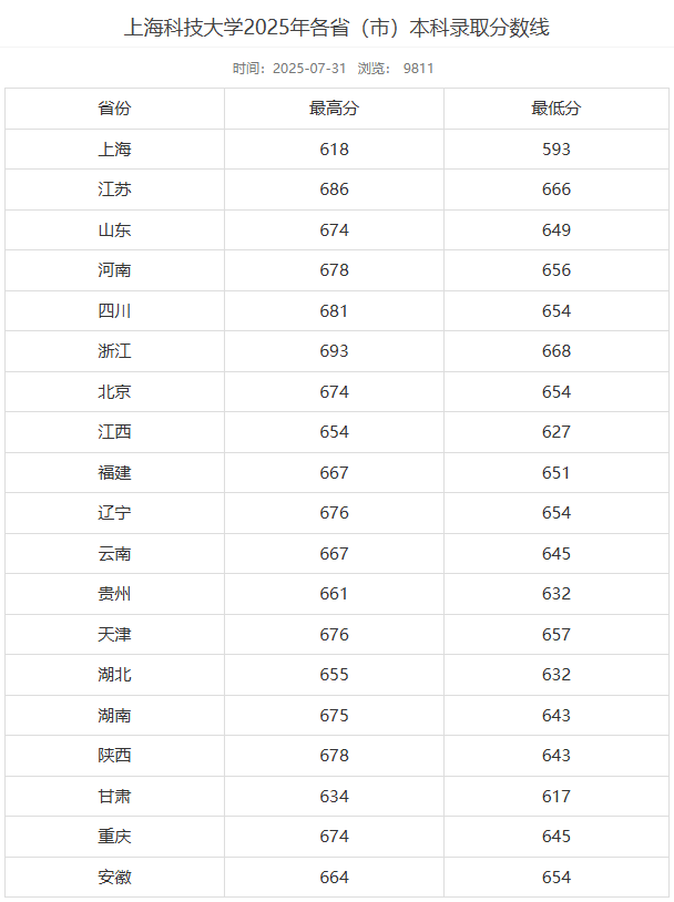 1、2025国科大平均各省录取分数线在670-680,比清华、北大低10分左右,和华东五校持平,甚至在部分省份赶超中科大、浙大、南大等校的录取分数线,可见国科大层次在我国高校的顶尖水平。