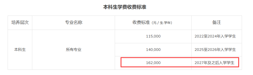 展望未来,2027年及之后入学的学生学费将调整为每年16.2万元人民币。