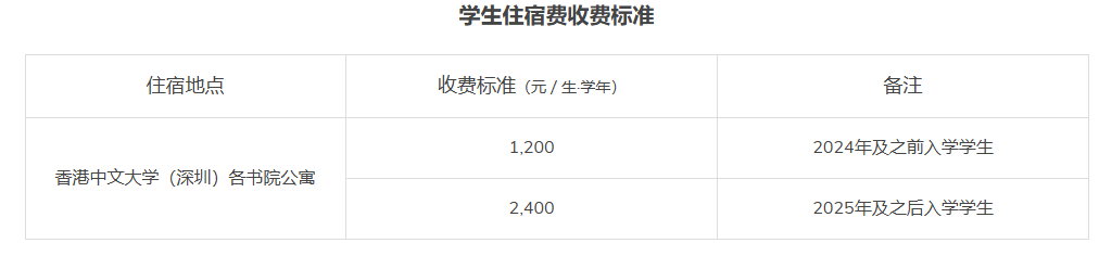 除了学费,住宿费是大学生活中的另一项主要开销。香港中文大学(深圳)为学生提供书院制住宿,住宿费用同样有明确标准。