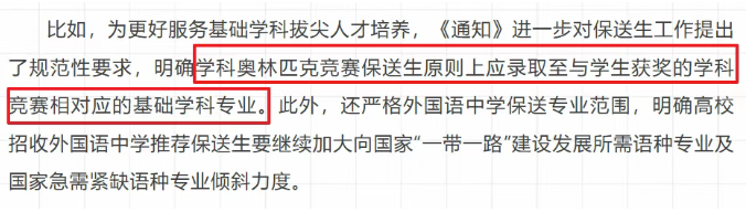 ✅保送生:明确保送生必须经过考核,规范奥赛保送专业范围,严格外国语中学保送专业范围。