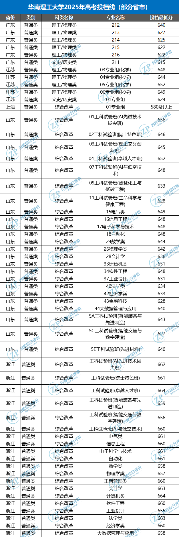 想报考华南理工大学,高考需多少分?名校综合评价汇总整理了华南理工大学在广东、江苏、上海、浙江、山东5省市的2025年高考普通本科批最低投档线,以供考生家长参考!一般来说,综评分数线大多低于高考统招分数线。