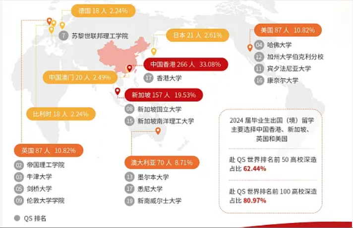 11.39%的本科生选择境外深造,入读牛津大学、剑桥大学、哈佛大学、香港大学、悉尼大学、康奈尔大学等世界知名高校。