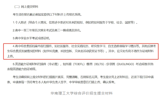 如:哈尔滨工业大学(威海)2024综合评价招生简章中规定,高中三年参加不少于10个工作日的社区服务和1周社会实践,并完成不少于6学分的考察探究活动(研究性学习、研学旅行、野外考察等),有意向报考综合评价的山东考生务必提前准备。