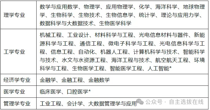 注:以上专业按物理学大类录取,学生入学时不分专业,在大学一、二年级根据自己的兴趣和能力,结合国家发展和社会进步对人才的需求,自主选择专业。