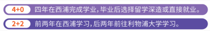 西交利物浦大学设有4+0和2+2两种培养路径,学生可在大二第二学期自主选择: