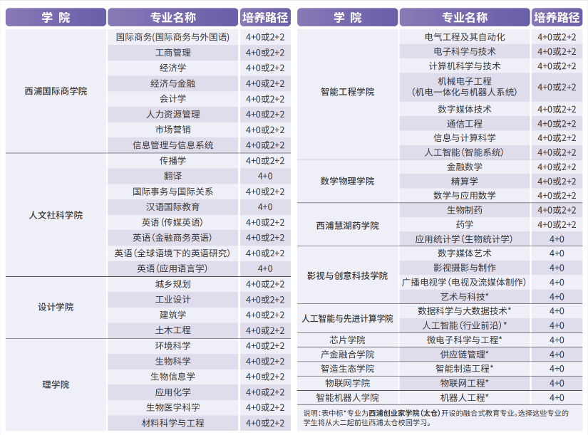 无论是选择4+0还是选择2+2,学生本科毕业均可获得西交利物浦大学学士学位、本科毕业证书以及利物浦大学学士学位。 各专业对应的培养路径如下: