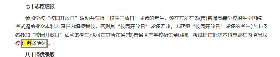 另一个关键区别是志愿填报资格。根据上科大招生简章,未获得“校园开放日”成绩的考生(含未参加者),在其他省份仍可在提前批填报上科大,唯独江苏省除外。