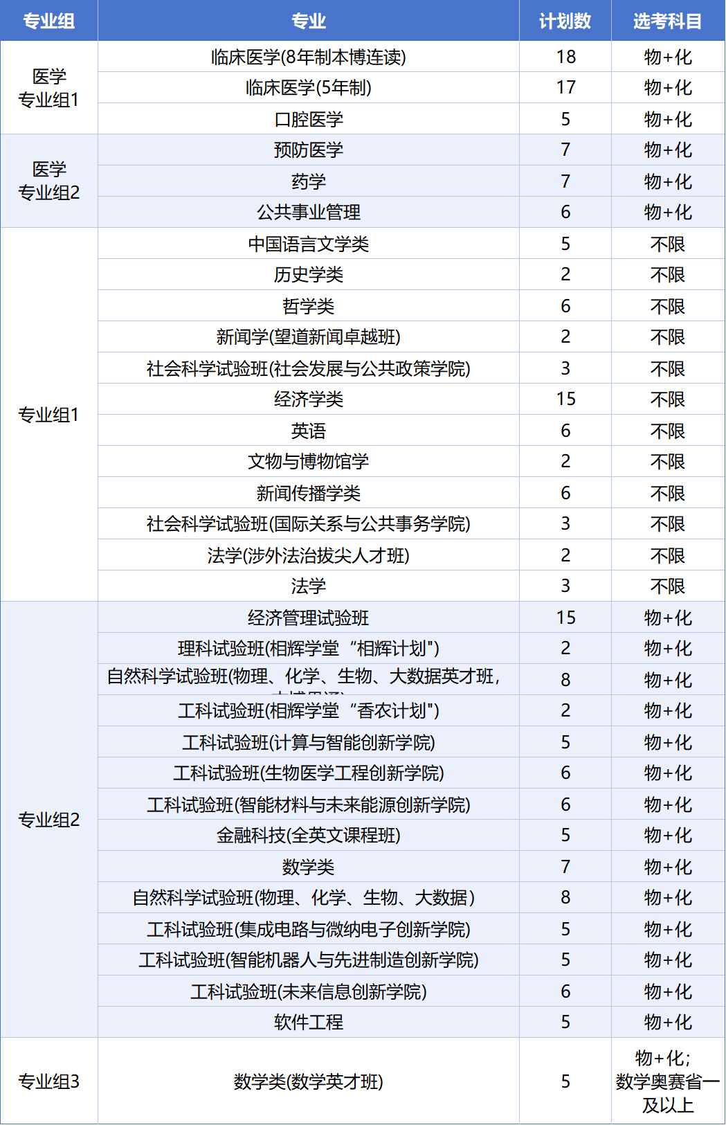 1、文科组:减少5人,社会科学试验班和法学拆分,新增文物与博物馆学和新闻学卓越班,金融学(金融科技方向)被踢出文科组,迭代为金融科技(英语方向),加入理科组。