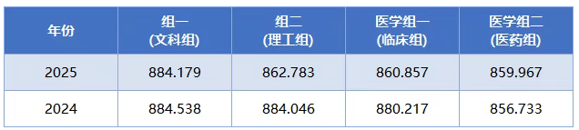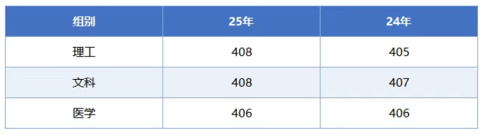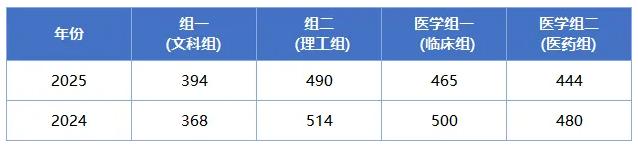 25年笔试入围分,专业组1文科:394;专业组2理工:490;医学专业组1:465; 医学专业组2:444